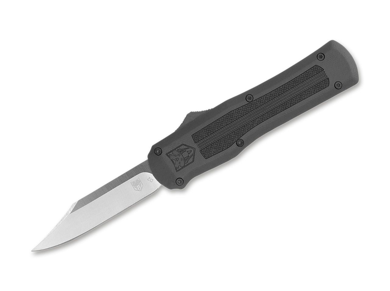 Tüüp: Taskunuga Laser graveering Üldpikkus: 14,70 cm Tera pikkus: 6,40 cm Tera paksus: 3 mm Raskus: 57 g Tera materjal: AUS-8 Käepide materjal: Alumiinium Avamine: Nupp Luku tüüp: Automatic